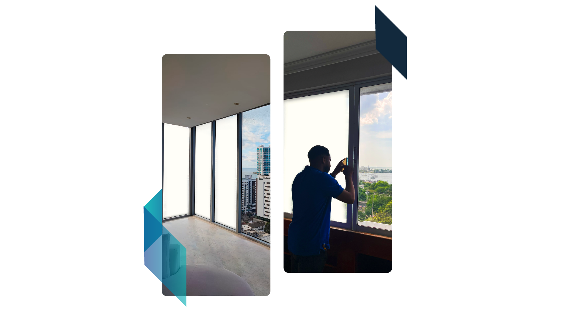 El vidrio inteligente es una película conmutable eléctricamente que se lamina entre dos paneles de vidrio, el cual se incorpora a una ventana, mientras que la película inteligente es una lámina que se adhiere a un vidrio existente, generando ambas, un cambio inmediato de transparente a opaco y viceversa con solo un impulso eléctrico.